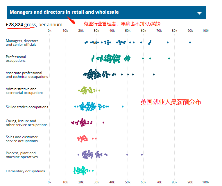 普通就业人员,年薪主要分布在2万到3万英镑区间