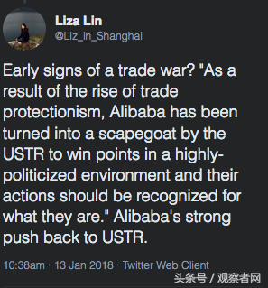 美国官员如此的态度,其实早有端倪,根源在于特朗普主义,也就是美国保护主义的兴起。特朗普在去年新启用美国的贸易代表罗伯特·莱特希泽以强硬著称. 《华盛顿邮报》曾有报道称,莱特希泽是出了名的对华贸易强硬派。此次名单出炉,被阿里巴巴称为政治化的决定,也和其有关。