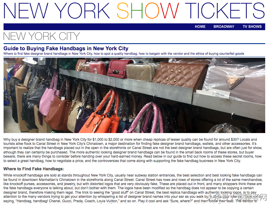 (美国网站的文章,标题为:纽约城买假名牌包导读,文章推荐了的多个可以买到假货的商店和市场)