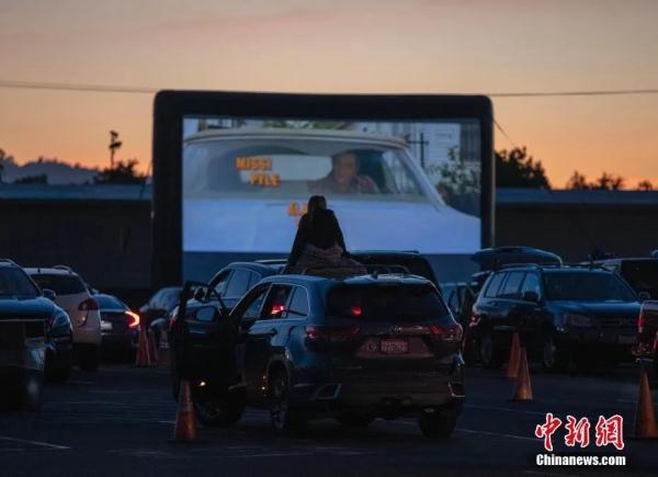 资料图:美国加州居民在一处停车场改建的汽车电影院看电影。中新社记者 刘关关 摄
