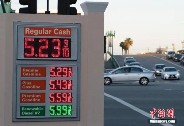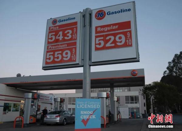当地时间3月6日,美国普通汽油均价达每加仑4.009美元,创2008年夏季以来最高均价纪录。中新社记者 刘关关 摄