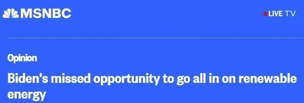 MSNBC报道称,拜登“错过”全力投入可再生能源转型的机会。图片来源:MSNBC报道截图。