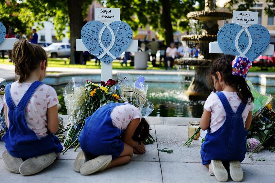 2022年5月26日,在美国得克萨斯州南部尤瓦尔迪市,人们哀悼枪击事件遇害者。新华社记者 吴晓凌 摄