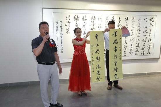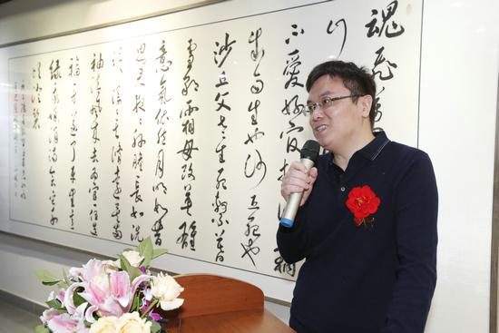 展览主办方北京德艺双馨文化艺术有限公司总经理郭若致欢迎词