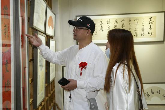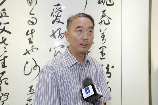 展览主办方北京德艺双馨文化艺术有限公司总经理郭若接受媒体采访