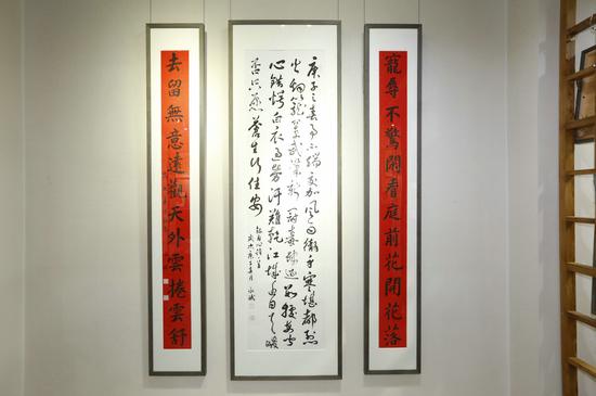 河北省职工书法家协会主席寇学臣书写对联祝贺展览开幕