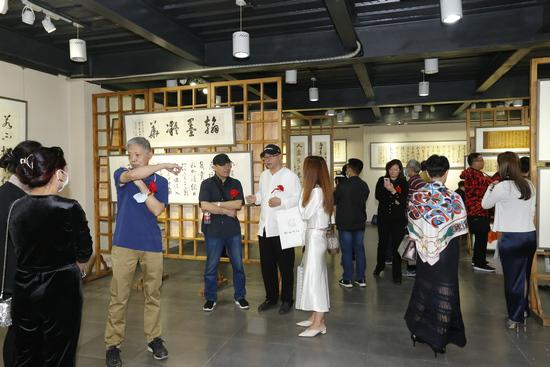 中国书法家协会行建维权工作部秘书长、河北省书法家协会副主席、国家一级美术师吴占良先生,《中国书法报》社长助理朱中原先生,《中国应急管理报》报社崔涛书记,北京市总工会许玉德处长,中国矿业大学北京校友会监事长、北京百卅蓝科技有限公司宛海鸣总经理,中国楹联学会会长助理、野草诗社常务副社长何小平先生,中国电子书法家协会主席、北京长城书画家协会理事、野草诗社副理事长、聂中波先生,中国保密协会文化理论分会李占秘书长,全国总工会《现代企业文化》杂志社辜晓琴副社长,中央电视台军事频道著名军事评论员马军先生,河北省职工书法家协会李建峰副秘书长,河北头条王英献总经理,河北神钲书院安秋生院长,河北省武安市书协主席韩增富先生,还有许多书法界、企业界、乡亲、同学校友等社会各界代表100多人参加了李永斌先生书法展的开幕式。