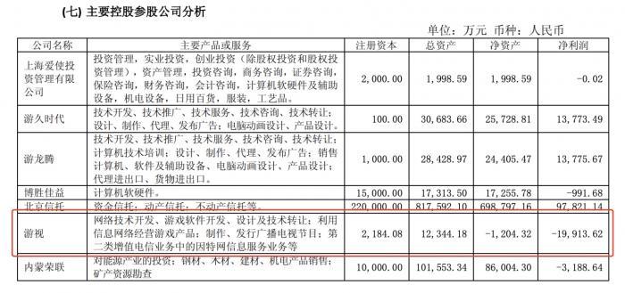 (图说:游久2015年年报显示,苏州游视网络科技有限公司在该年度亏损达-19,912.62万元)