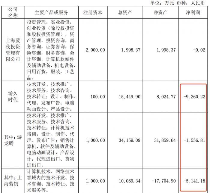 (图说:游久游戏股份旗下负责游戏业务的游久时代、游龙腾和上海紫钥3家公司2021年净利润皆为负数。 图源:游久游戏股份2021年年报)