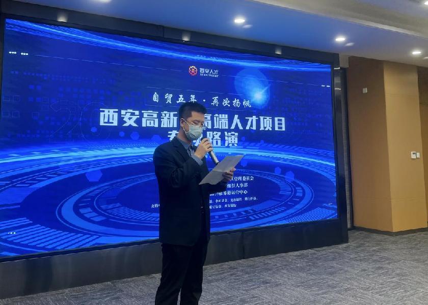 为庆祝中国(陕西)自由贸易试验区成立五周年,推动西安高新区建立人才聚集高地,4月23日上午,以“自贸五年·再次扬帆”为主题的西安高新区高端人才项目专项路演在西安人才综合服务港三层路演厅顺利举行。本次活动由西安高新区管委会主办,西安高新区党工委组织人事部承办,西安人才综合服务港运营中心执行。