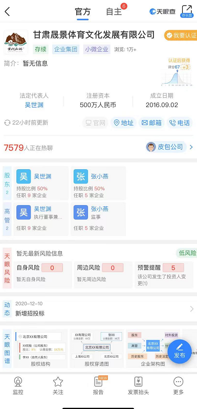 ▲甘肃晟景体育文化发展有限公司天眼查截图