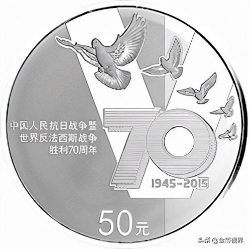 的胜利成果,又抒发了中国“致敬历史,止戈兴邦”的博大胸怀。如今的中国,已是屹立在世界东方的巨人,但中国给世界承诺:绝不称雄称霸,永远不搞扩张、侵略。此币以“和平”为主题,贴切地体现了中国与世界各国人民一道共同维护世界和平的坚定立场。在中国人民抗日战争暨世界反法西斯战争胜利70周年阅兵大典上,国家主席习近平满怀深情地说:“经历了战争的人们,更加懂得和平的宝贵。我们纪念中国人民抗日战争暨世界反法西斯战争胜利70周年,就是要铭记历史、缅怀先烈、珍爱和平、开创未来。”这一套带着历史温度的