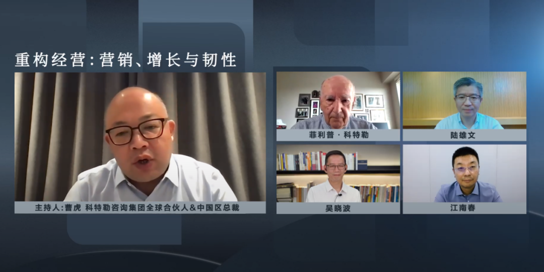 9月22日,特邀“现代营销学之父”菲利普·科特勒和作者团队,与深耕中国商业、企业经营管理与市场营销的代表人物陆雄文、江南春、吴晓波深度对话“重建经营的本质——营销、增长与韧性”。结合中国企业的探索、全球市场变革与趋势,共同叩问未来市场营销演进与企业增长之路。