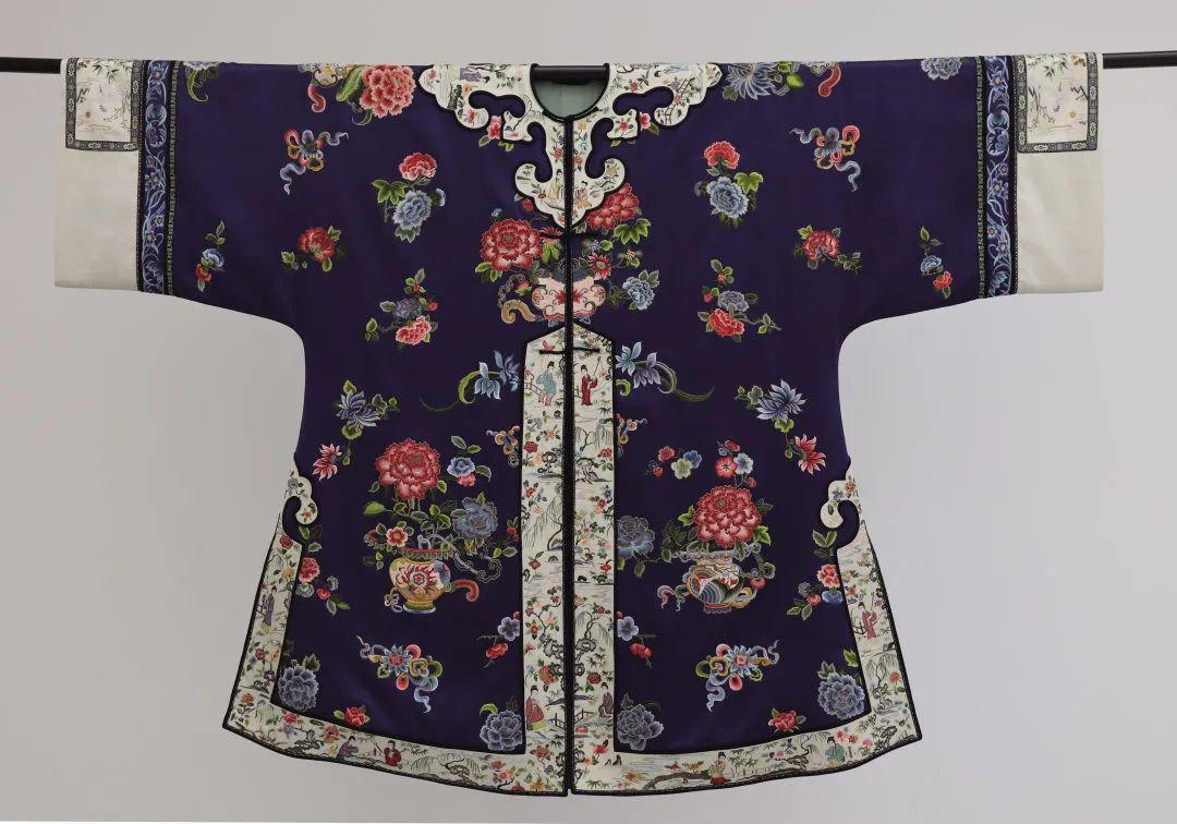 展厅中,府向红的作品《花影女袍》,以清代形制对襟女袍褂为载体,融入地方文化与当代美学设计理念,在云肩、挽袖、衣襟和衣边等处,绣制着姿态各异的美人和童子,在庭院间或嬉戏、或静坐、或阅读,终成一幅动静结合的苏式“生活”立体画卷。
